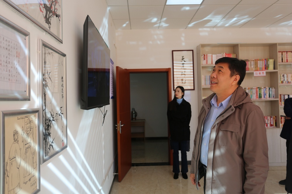 調(diào)研中,楊平一行實地察看了集團職工書屋軟硬件配套設(shè)施,了解企業(yè)文化建設(shè)、思想引領(lǐng)、書屋管理及讀書活動開展情況。