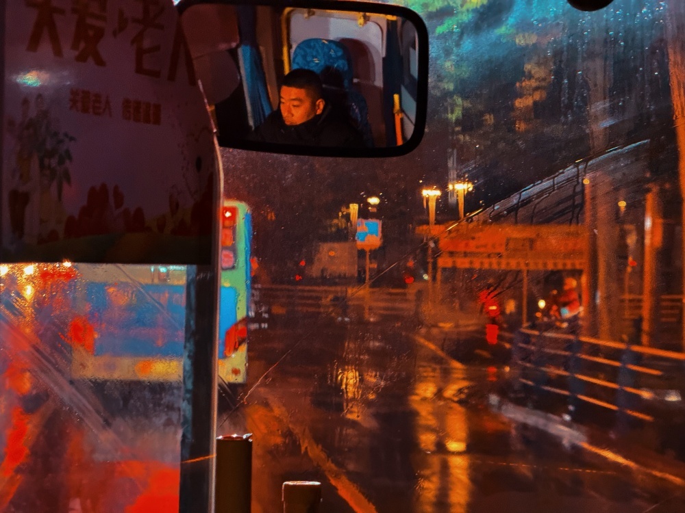 圖/雨夜時的末班車,顯得格外冷清,但面對乘客時的笑容,可以消除寒冷