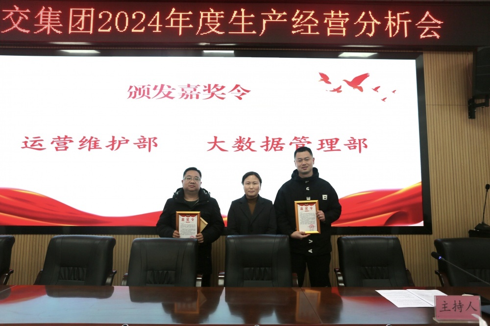 會(huì)議第一項(xiàng)議程是頒發(fā)《市公交集團(tuán)嘉獎(jiǎng)令》。集團(tuán)黨委副書(shū)記、總經(jīng)理李曉麗為運(yùn)營(yíng)維護(hù)部、大數(shù)據(jù)管理部頒發(fā)嘉獎(jiǎng)令,肯定兩個(gè)部門(mén)在集團(tuán)2024年365輛新能源公交車(chē)更新項(xiàng)目中的出色表現(xiàn)。