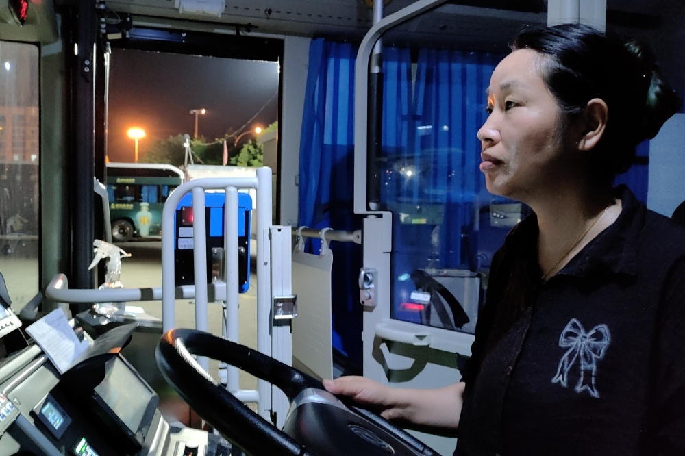 夏夜的停車場(chǎng)很是悶熱,她穿梭于公交車之間熟練地挪動(dòng)車輛,確保每輛車都能在充電低峰時(shí)段把電充滿。