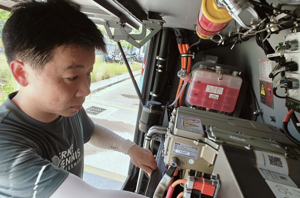 大太陽底下,他仔細(xì)檢查每一處,就為了保障公交車能順順當(dāng)當(dāng)跑。