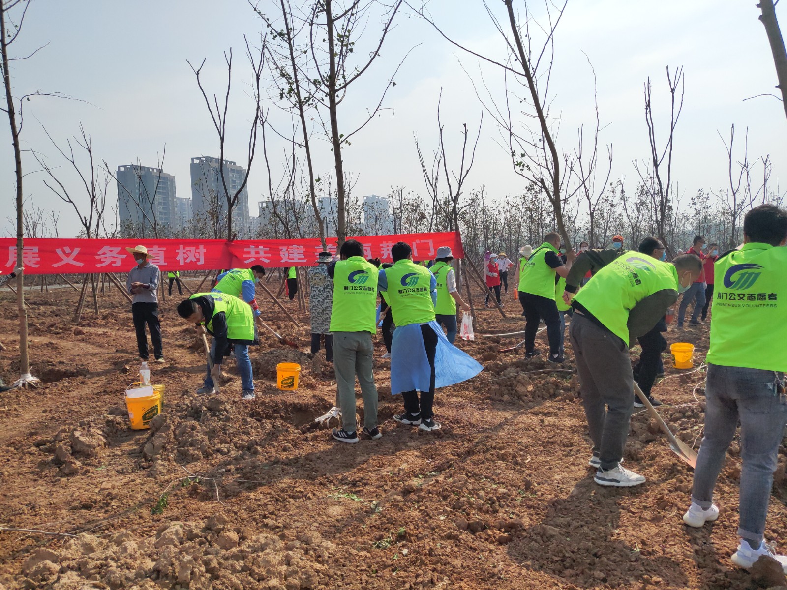 4月29日,荊門晚報第十二屆讀者林植樹活動開展,在漳河大道仙楊路植樹點,上百晚報讀者、志愿者隊伍參加了植樹活動。荊門公交集團14名公交志愿者積極參與活動,并調派兩輛公交車進行義務接送..