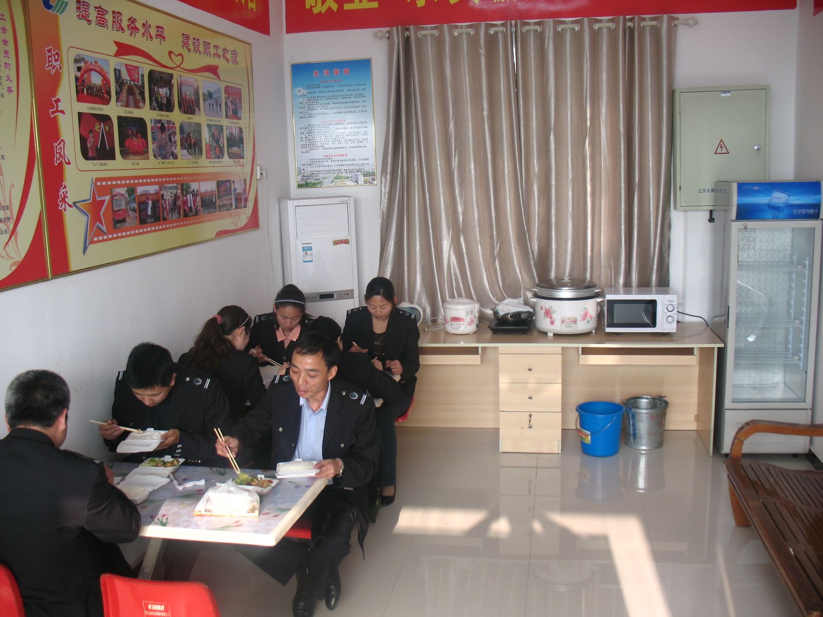 為了給駕駛員創(chuàng)造良好的工作生活環(huán)境,公司出資購買了保鮮柜、微波爐、開水壺、桌椅、空調(diào)等日常生活設施,使駕駛員能吃上熱飯,喝上熱茶,盡最大努力幫助、呵護一線員工,真正的為他們帶去一絲關懷和溫暖。為方便市民乘車,公司還要求所有調(diào)度室、站務室免費對乘客開放,為市民提供咨詢服務,解決乘客飲水難、入廁難等便民之需。