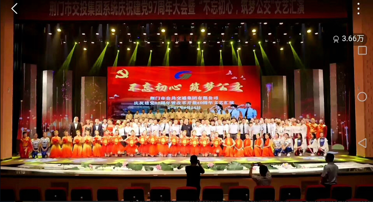 6月26日,市公共交通集團(tuán)有限公司在荊門劇院舉行慶祝建黨97周年表彰大會(huì)暨“不忘初心,筑夢(mèng)公交”文藝演出,來自11個(gè)基層單位員工獻(xiàn)出了一場(chǎng)炫目多彩的紅色文化視聽盛宴。